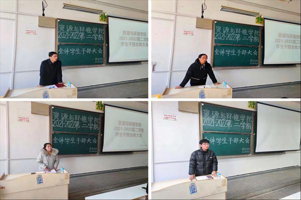 这次会议既是收心会、也是动员会。新的一年,资源与环境学院将以更加扎实的作风和务实的态度推进学生队伍作风建设,不断提升学生干部工作水平,积极拓展工作新思路、新方法、新实践,以优异成绩向党的二十大献礼。
