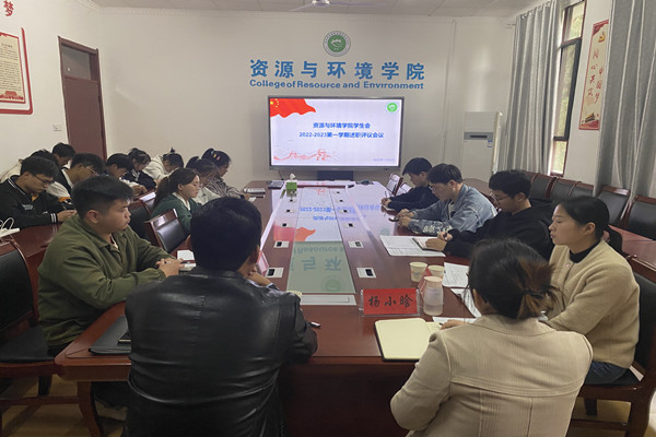 为贯彻落实学生会组织深化改革,巩固学院学生会改革成果,推动从严治会,更好地发挥联系广大同学的桥梁和纽带作用,建设更好的学生会组织形象,11月4日下午,资源与环境学院于学院会议室召开2022-2023学年第一学期述职评议会议。学院党委副书记沈树周、团委副书记杨小晗、学生会指导老师王丽萍以及校学生会主席团成员刘名受邀出席担任评委。第七届学生会主席团全体成员及各部门负责人参加本次会议,本次会议由王丽萍主持。