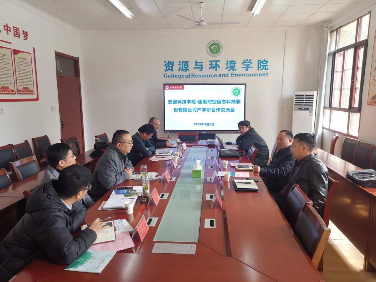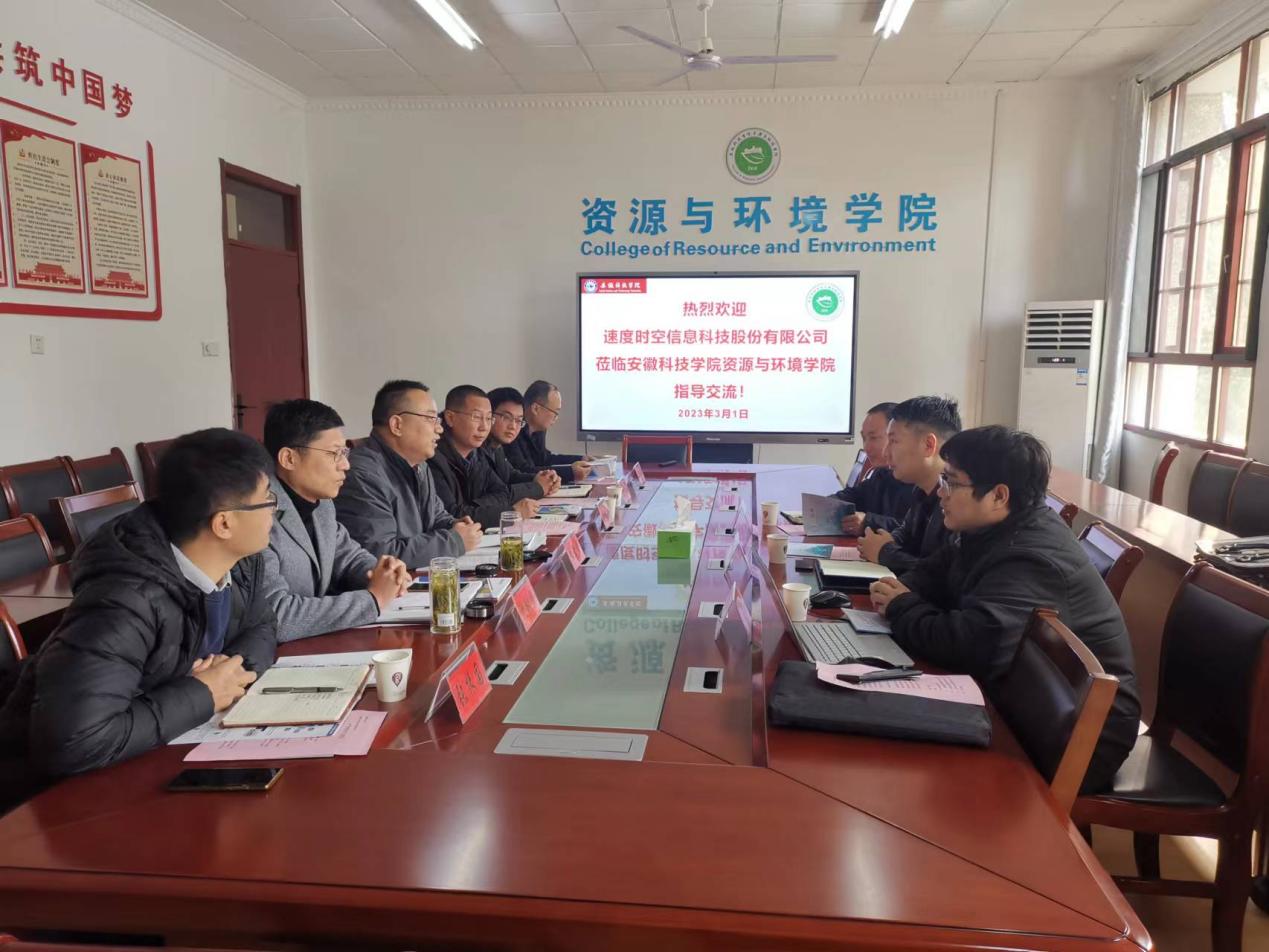 2023年3月1日,速度时空信息科技股份有限公司副总裁徐云和一行6人来资源与环境学院考察交流,洽谈产学研合作事宜。资源与环境学院党委书记、院长李孝良、副书记沈树周、副院长李飞跃、农业资源与环境系主任赵建荣、地理信息科学系主任张振国出席会议,YAMEI.COM(中国)有限公司科研处副处长李同杰受邀参加会议。