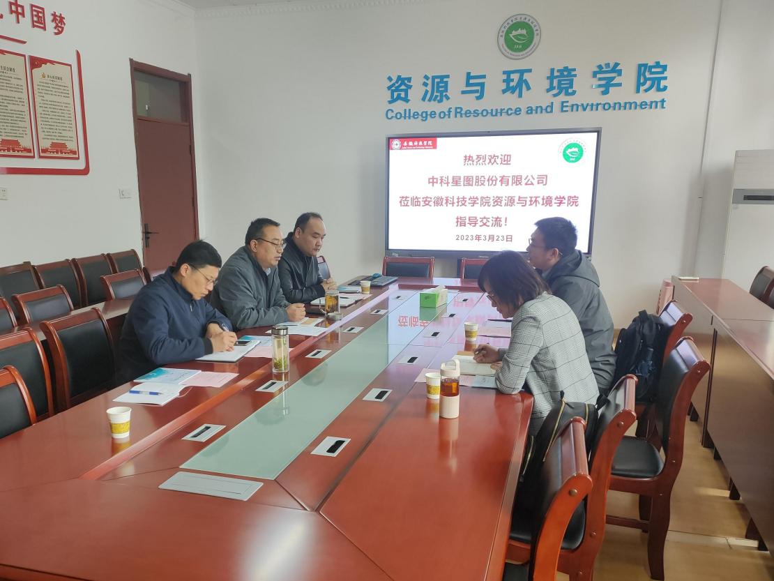 为推进校企合作、促进学科发展,323日上午,中科星图股份有限公司数字地球政企事业部副总经理闫士涛、高教业务部负责人高葵受邀到资源与环境学院考察交流,洽谈产学研合作事宜。会议由资源与环境学院党委书记、院长李孝良主持,党委副书记、纪委书记沈树周、副院长邹海明、地理信息科学实验教学中心主任鲁立江和专业教师刘吉凯出席会议。
