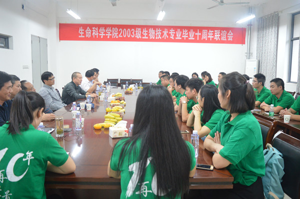 10月2日,生命科学学院2007届生物技术专业校友从祖国各地齐聚母校举行毕业十周年联谊会。生命科学学院在学院会议室组织师生联谊会,学院前任、现任领导和部分教师代表参加联谊会。