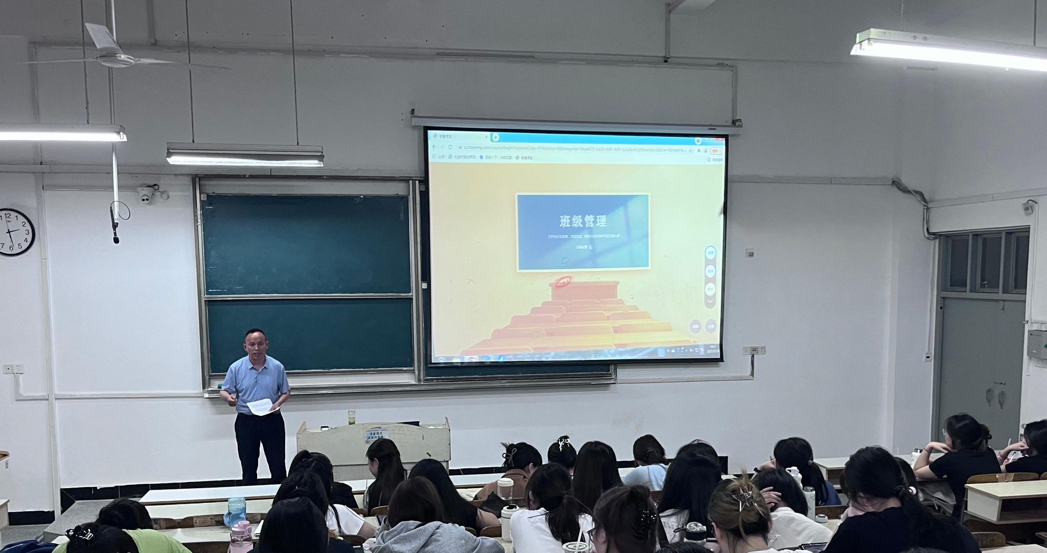 汪宏结合自身三十多年的教育实践经验,分享了班主任工作的宝贵理念和方法。他首先明确了班主任的角色定位,指出班主任不仅是学生的第一责任人,更是他们成长路上的重要引路人,鼓励同学们勇于承担班主任工作,在实践中不断提升自我。其次,在班级管理方面,他提出“管”与“理”相结合的理念,既要通过规则规范学生行为,又要以柔性劝导的方式关怀学生成长,做到刚柔并济。最后,汪宏结合工作中的实际案例,总结了处理问题的关键原则:保持端正的态度、稳定的情绪,做到就事论事、冷静应对。汪宏的分享帮助学生意识到教师应以平和的心态和积极的情感面对工作,在关爱学生的同时,也要学会保护自己,实现师生共同成长。