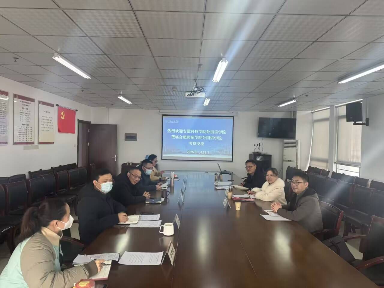 为推进学院招生就业工作和师范类专业二级认证整改工作,1月13日上午,外国语学院党委书记蔡为青、副书记张海亮、副院长洪民一行三人赴合肥师范学院调研。合肥师范学院外国语学院党委书记马四民、院长李可胜、副书记杨娜、副院长吴礼敬、英语(师范)专业负责人茆莹莹出席了调研交流会。
