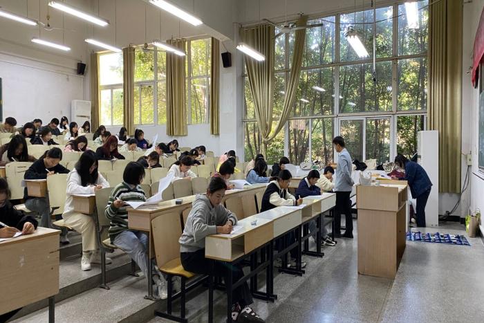 考试为闭卷形式,有选择、填空、判断、简答、论述五种题型,考查范围包括了管理篇、资助篇、奖惩篇、服务篇以及附录等内容,重点为教学管理、公寓管理、奖勤贷补、评奖评优和违纪处分等内容。考场上,各位新生遵守考试规则,认真作答,一丝不苟,考场秩序井然,有条不紊。