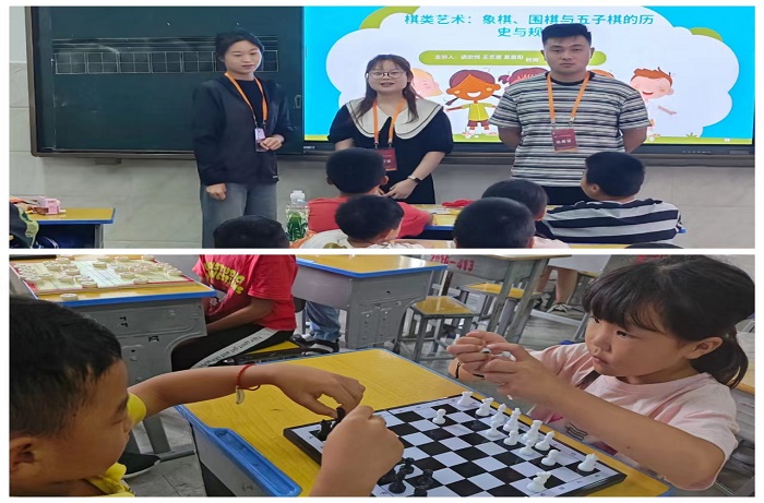 中国的“棋文化”历史悠久,源远流长。我们的棋艺班专门为小学生开设,课程包括象棋、围棋等传统棋艺,通过学习和练习各种棋类游戏,培养孩子们对棋艺的兴趣,帮助孩子们提高专注力、思维能力和逻辑推理能力,使他们逐渐养成良好的行为习惯、生活习惯和科学的思维方法。课后,支教团成员胡欣悦说:“在布置棋局和思考对策中,孩子们逐步学会了用科学的方法看问题、想问题。在对弈中,孩子们热情高涨、积极参与,享受不断成长的过程和乐趣。”