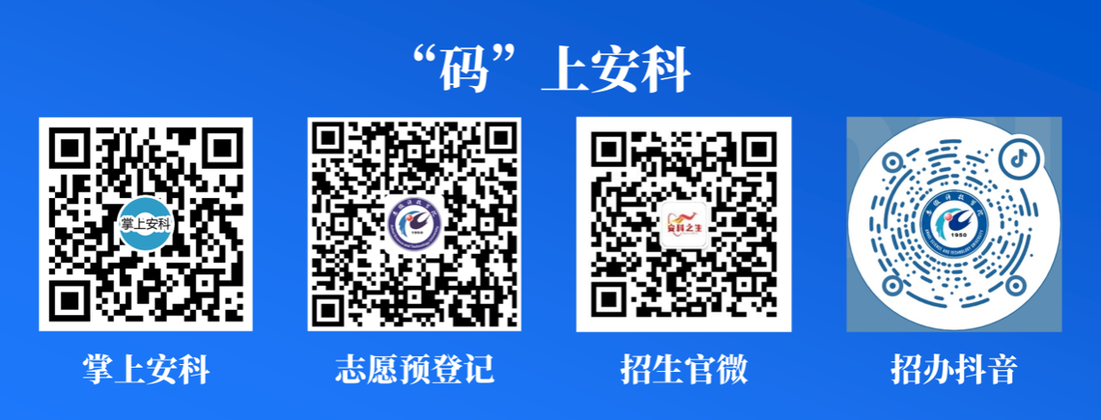 3.查看“掌上安科”微校园,扫码志愿登记信息,专业老师一对一指导;扫码关注“安科之生”招生官方微信公众号;抖音招办官方账号。